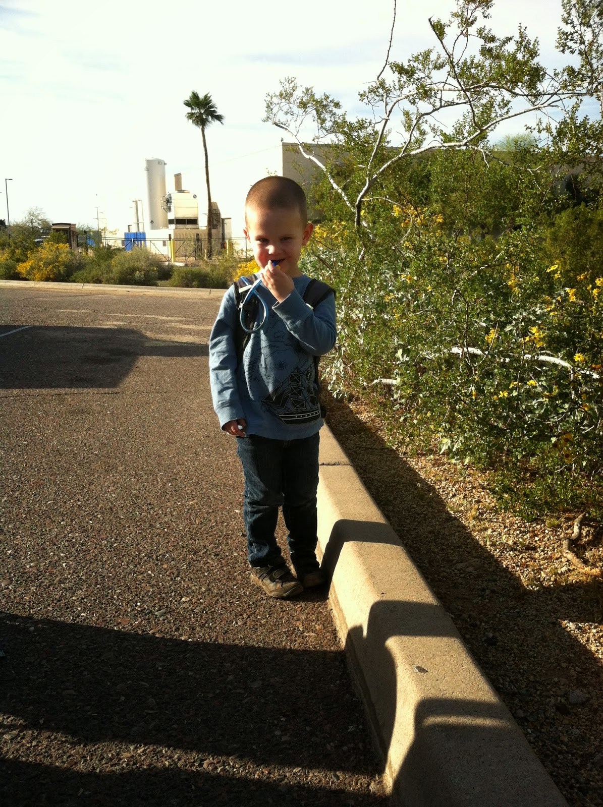 Arizona springtime means it's time to hit the trails and hike. We've been exploring more of South Mountain lately. It has become a fun family tradition. Lindi loves riding in the hiking pack and never puts up any fuss. Hyrum is a trooper and keeps up pretty well. We learned the hard way not to let the 2 year old be the "water guy" and carry the Camelpack. Result: No water left halfway into the hike and a declaration of "I leaked!" Luckily we were at the end of our hike when the second came true.